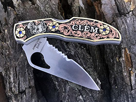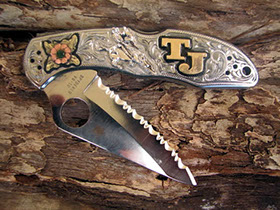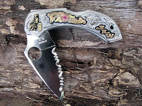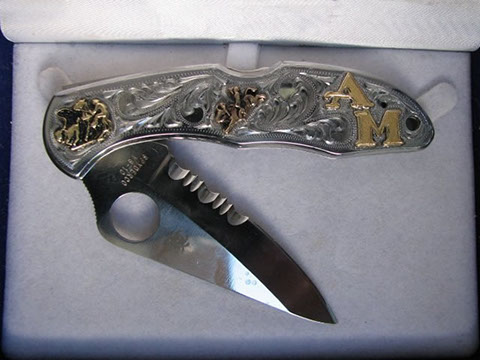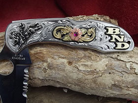 Below you will find the RIDETUFF range of TROPHY KNIVES that are hand made with real gold on sterling silver bases, gold plated or jewellers gold on German silver bases.